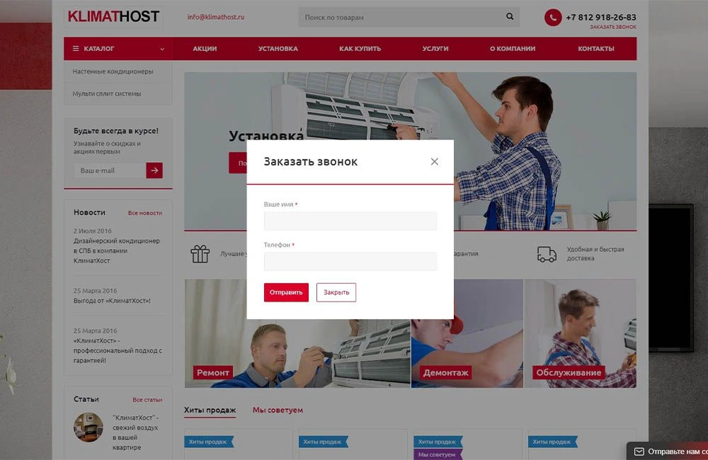 • Сайт для компании, занимающейся климатическим оборудованием