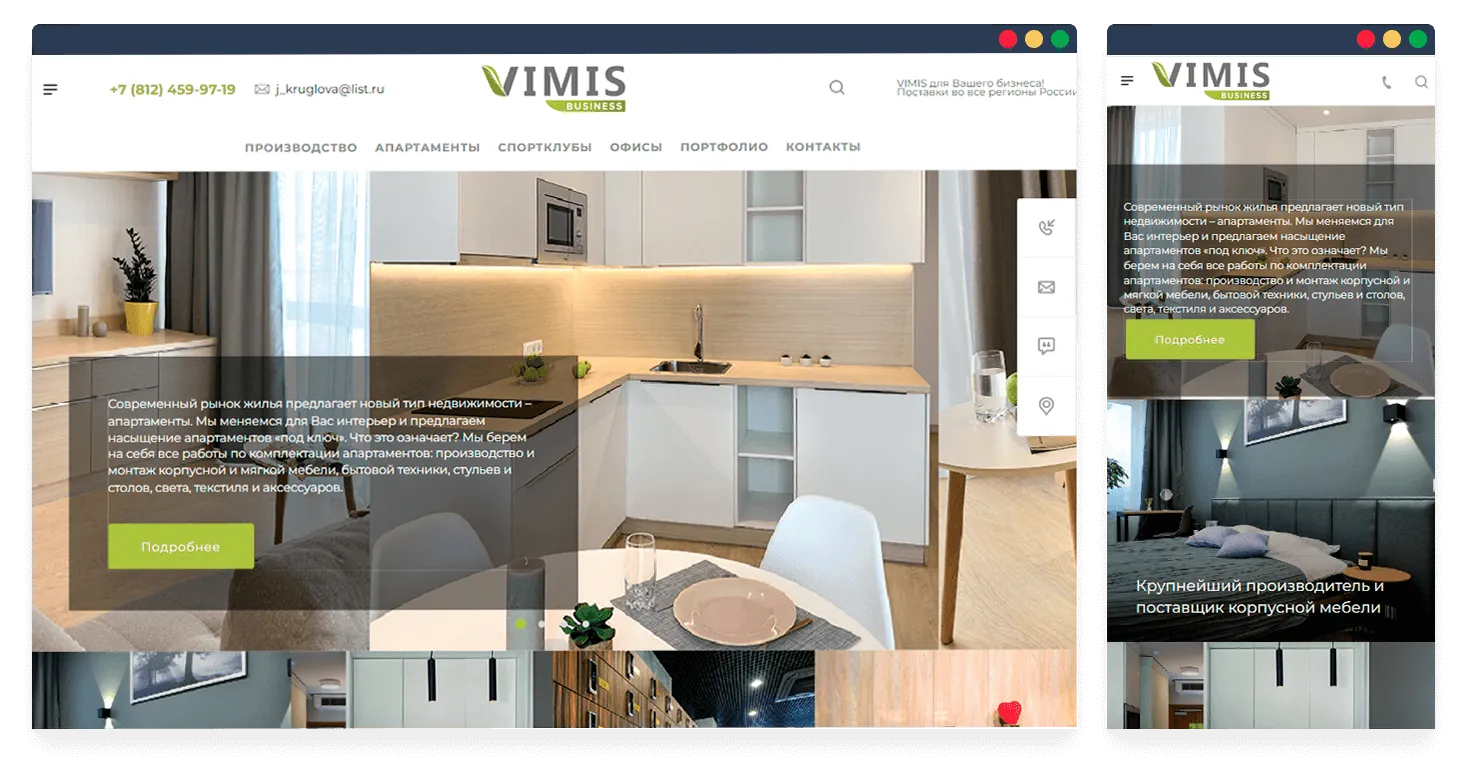 Мебельная компания «VIMIS» является одним из лидеров среди производителей корпусной мебели в Северо-Западном регионе Российской Федерации. Уже более 20 лет компания комплексно оснащает мебелью офисные и коммерческие помещения, предлагая своим клиентам полный цикл услуг – от разработки проекта до сборки и расстановки в помещении.
